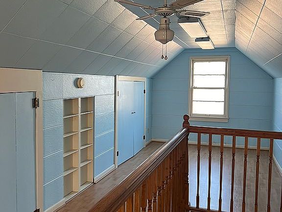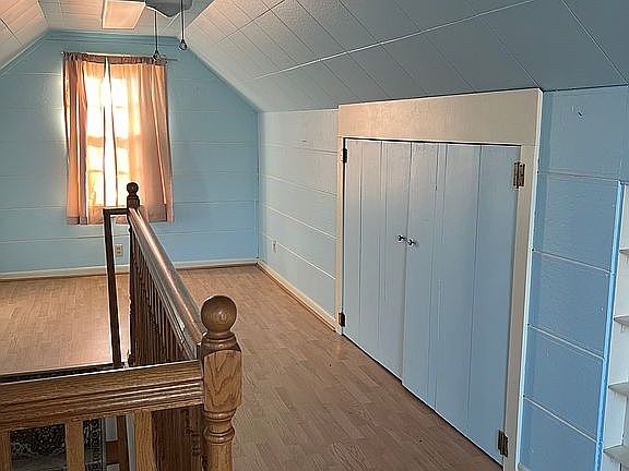 Small 2 bedroom home w/ loft and basement. Small kitchen and dining area, living room 2 bedrooms and 1 bath with garage on property.