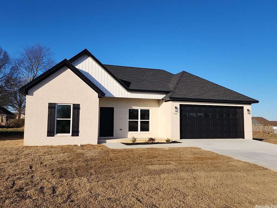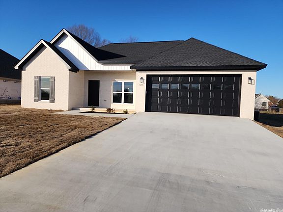 Nice 3 bed. 2 bath open split floor plan in one of Searcy's newest subdivision just inside the city limits. This house has wood laminate floors with ceramic tile in the seperate laundry & baths. The 9' ceilings in LR, white trim with grey/beige interior with black faucets, knobs, & lights looks great. The yard has been sodded & has a deep back yard with a covered back porch. Main bedroom is large & attached bath has a walk in shower & double sinks. All shaker custom cabinets have quartz tops. Extra recessed lights on exterior front for security & accents. Kitchen has soft close drawers & pantry. Living room is very large & spacious. Should be completed in mid January 2023. See agent remarks.