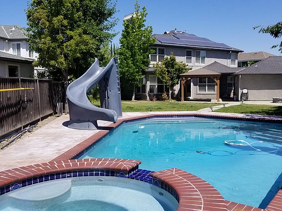 Grand tile entry w/ wood bannister. Volume ceiling, custom chandelier & skylight. Custom Plantation shutters and crown molding. Formal dining room & living room. 5th room potential office. Gourmet kitchen w/ butler's pantry & walk in pantry. Family room w/ wood burning fireplace. Upstairs master suite has large walk-in closet. Spa like master bath with clear glass shower, dual sinks & skylight. Remodeled 2015. Two more bedrooms upstairs & a large hallway bathroom w/ dual sinks. Upstairs laundry room. Backyard with gazebo, pool & spa. Easy access to the 580-freeway. Leased Solar. Detached over sized 3 car garage and long driveway. Nearby schools, downtown shops, restaurants and wineries minutes away.