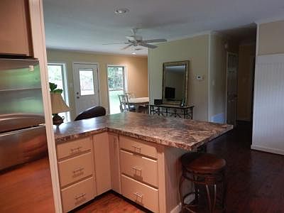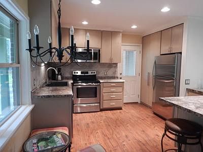 Totally remodeled home. Stainless appliances in kitchen, new countertops and backsplash. New interior and exterior paint. New flooring, windows, lighting fixtures,exterior columns, roof. Shop in backyard.