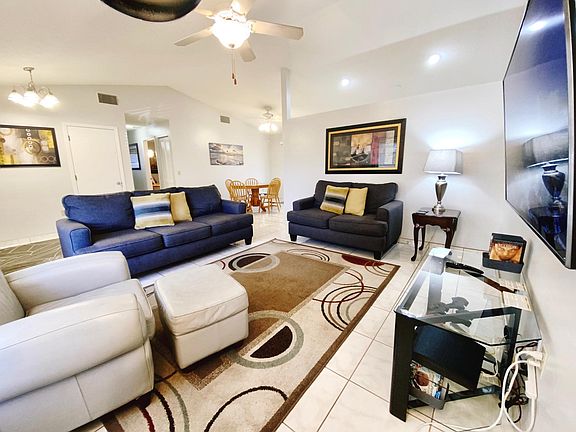 Price includes ALL utilities and Wi-Fi and Cable Channels Available: April 01, 2020 through October 31, 2020 This 3/2 Home is situated close to Pinecraft, beaches, shopping. King-Size Bed in Master Bedroom w 47" HDTV Queen and Twin-size Day bed on 2nd and 3rd Bedrooms Bike storage in Garage Directly beside SCAT Bus stop with service to Siesta Key Beach Free High-Speed WiFi 65" LG 4K TV with HD Channels PS3 with 4 controllers, DVD & Blu Ray Bookshelf with Selection of Books Washer and Dryer It is available until October 31, 2020 Includes Electric, Water, TV, Rent