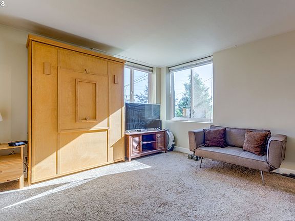 Homeowner or Investor. Easy Downtown Living. Contemporary studio with lots of light. Built-ins everywhere, tons of storage options, laundry in unit. One block to PSU, close to grocery, mass transit, theaters, restaurants. Reasonable HOA fee covers most utilities including heat, gas, water. Street parking available with $75 annual permit. No rental cap. Selling fully furnished with Murphy bed. Turnkey!