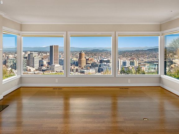 Perched above the city, this mid-century masterpiece has been meticulously remodeled with no detail overlooked. Nestled privately down a long driveway, the home welcomes you with breathtaking, panoramic views of the Portland skyline and surrounding mountains. A seamless blend of timeless design and modern luxury, the home offers a sophisticated and serene lifestyle.The oversized deck is perfect for taking in 180-degree views, while the tranquil Japanese-inspired gardens below, designed by Kurisu, provide a peaceful retreat. The expansive primary suite is a true sanctuary, featuring a walk-in closet and a spa-like bathroom with heated floors. With mostly main-floor living, the primary suite and secondary laundry space are conveniently located on the first floor. The lower level offers a beautiful secondary bedroom suite, a sauna, an impeccably designed wine cellar, a family room, workout space, and additional laundry facilities. Other highlights include a 4-car garage, generator, and sleek, sophisticated finishes throughout. This home is an unparalleled blend of luxury, comfort, and style in one of Portland's most coveted neighborhoods. [Home Energy Score = 4. HES Report at https://rpt.greenbuildingregistry.com/hes/OR10235971]