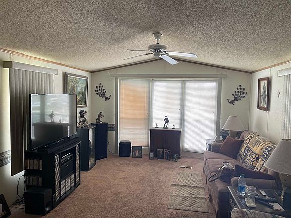 Wonderful move in ready 2-bedroom mobile home located in Four Seasons Park. Vaulted ceilings in living room, Spacious kitchen has plenty of cabinet space, all appliances stay including New refrigerator (4/24), Separate dining room. Two spacious bedrooms with plenty of closet space, Full bath has garden tub. Heated 4 season enclosed porch give you additional living space year-round! Concrete patio, Car Port & Storage shed. Newer water softener is owned. Care free & affordable living! Pool access is included in monthly fee. Home could be sold furnished, contact me for details. Buyers must be approved by Four Seasons Park, contact park office for details.
