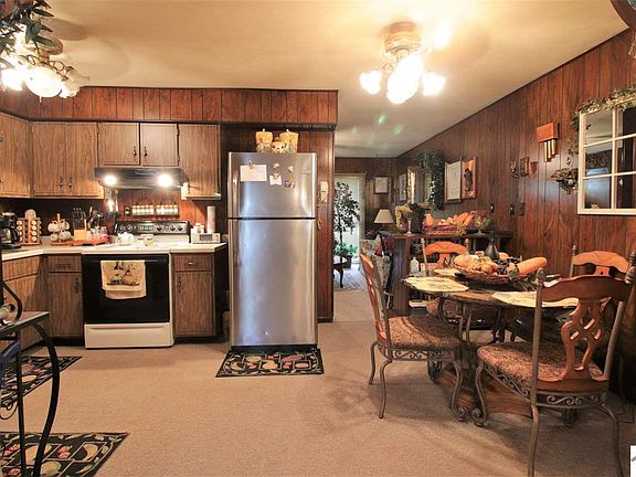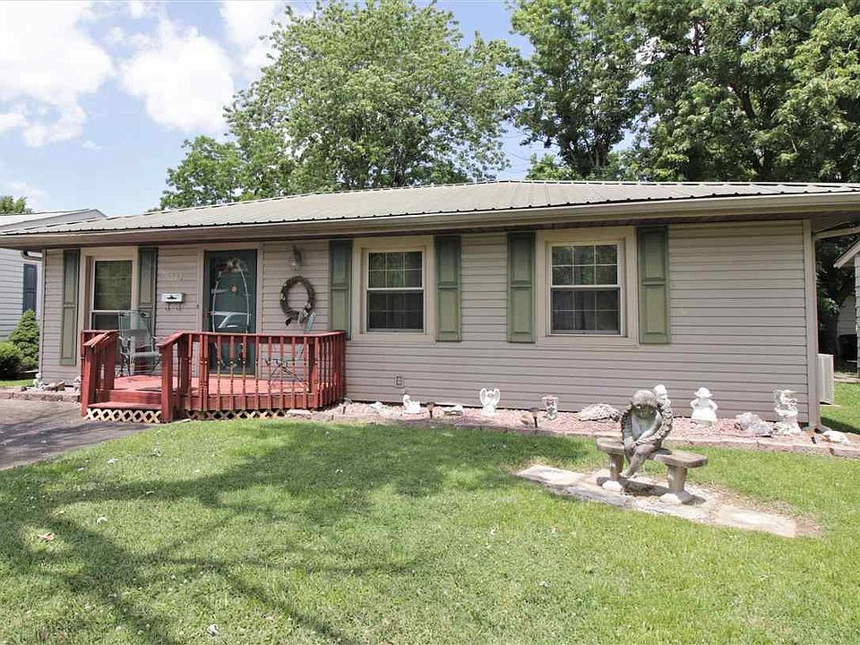 Check out this 3 bed/1 bath vinyl sided home with metal roof! A two car detached garage with heat, privacy fenced backyard with patio and deck areas, and an additional storage building out back. Inside are hardwood flooring under the carpet, a step-in shower, and large addition of a dining room and family room complete with gas log fireplace! Being sold AS IS.