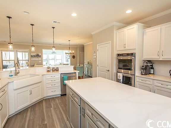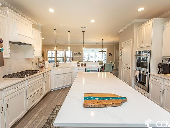 55+ active community of Grande Dunes Del Webb. Spacious Tangerly Oak floor plan on a corner lot with a pond view. This gorgeous 4 bedroom and 4 bathroom home has many upgrades including: gourmet kitchen, sunroom, screened in lanai that leads to a fabulous pergola and an entertainer's outdoor kitchen (w pizza oven) and professionally landscaped. Seamless pavers that cover 35' X 14'. Interior features: custom built ins, organizer closet, upgraded flooring, oakwood stairs, crown molding and wainscoting, walk-in-pantry, tankless water heater, energy-saving insulation, upgraded lights, quartz countertops, and more. The amenities of the community include: 3 pools (2 exterior and one interior), Del Webb Clubhouse (gym, grand party kitchen, craft rooms, flex rooms), bocce courts, fire pit overlooking Intracoastal Waterway. Pickleball and tennis courts. Gated access to Grande Dunes Ocean Club with cafeteria and restaurant, access to the beach. Neighborhood marina with access to boats and jet ski rentals. Intracoastal walking trail.