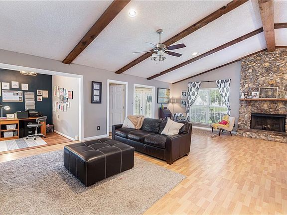 Adorable move-in ready Dommerich Woods home with numerous upgrades throughout! Spacious & open great room with vaulted ceilings & stone woodburning fireplace. Large open kitchen with new vinyl tile flooring overlooks great room and features beautiful granite counters & bar area, subway tile back splash & stainless appliances including newer double oven & dishwasher. Formal dining room with painted concrete floor & decorative bead board. 3 Bedrooms and 2 full baths plus additional office space all with laminate wood-look flooring. Lovely master suite with walk-in closet, double sinks & huge shower. French doors from the master suite and the office lead to charming covered patio + giant fenced backyard. Additional upgrades include inside laundry room, new water heater 2019, 2006 roof & AC, 2 car garage with newer opener, newer windows, brand new sod in the front yard, fresh paint inside & attic storage.