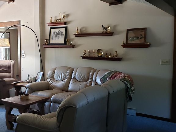 A new Kohler generator (Dec. 2018) to power house if power goes off. The home has electric forced air furnace and heat pump, solar panels, and radiant heat (can use radiant heat or heat pump). It has a sump pump and dehumidifier. There are new front/back storm doors installed recently, Beautiful new landscaping, established trees, fenced yard. and huge deck. Owners will give a carpet/flooring allowance of $2000. All appliances stay,