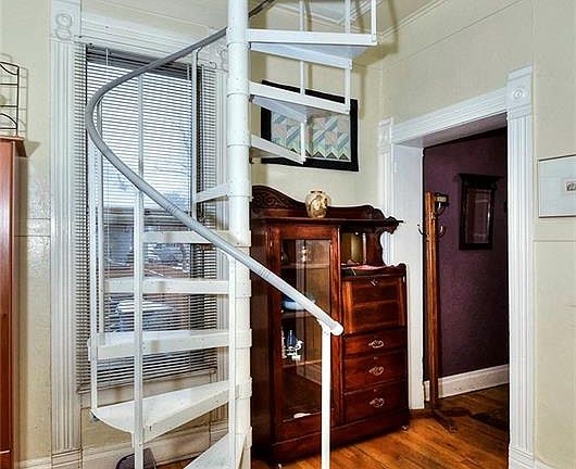 Cute, turn of the century home. Large master suite with shower bath on second floor accessed by spiral staircase. Two bedrooms on main floor with full bath. Pocket doors between living room and dining room. Usable basement with nice concrete floor. Foundation has been upgraded about 10 years ago. Air conditioning with ducting to the second floor. New roof being installed on home. Good size fenced yard. Front porch. Great curb appeal. Wood deck. 3rd bedroom has armoire for a closet.