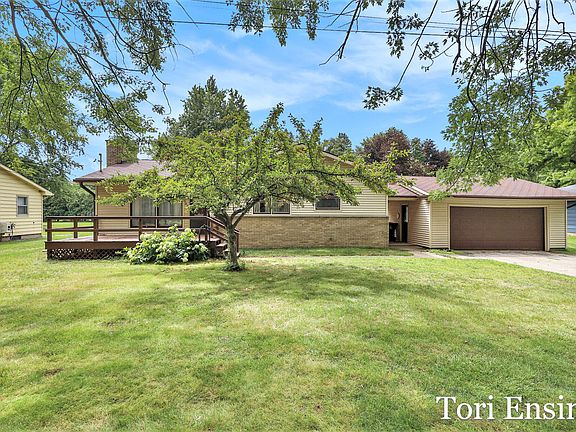 Charming ranch home in Belding on a large lot! Main floor has 3 bedrooms and 1.5 bathrooms. Living room has real wood burning fireplace. Ample storage throughout the entire home. Full basement with bar area and 2nd living room with fireplace. Laundry room in basement along with storage space. Outside you will find a 2-stall garage and 2 storage sheds. Home also has A/C and generator, all on .74 acres in town! Close to downtown Belding, shopping, walking trails & more! Short commute to GR. This home has been well cared for! Highest and best offers are due by 10am on Friday, August 11th.