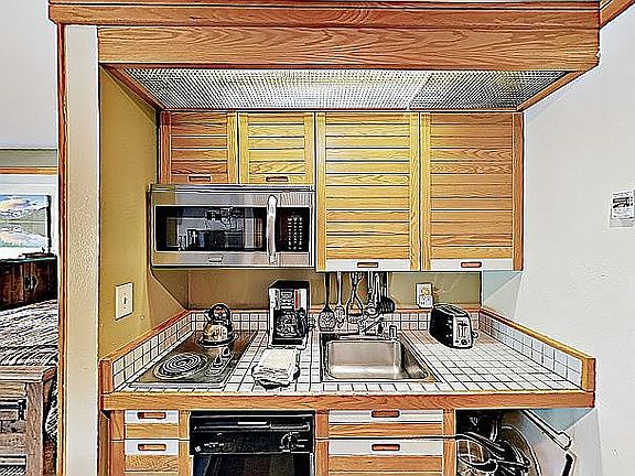 You’ll find outdoor adventures of all kinds at this Slopeside Condominiums studio. Stroll across the foot bridge to the lifts and experience the best skiing, snowboarding, hiking, and biking trails in the area. NEW fireplace and feather top mattress to let you warm up and relax. After a day on the slopes, unwind with a soak in one of two shared hot tubs, just a few steps from your condo. ABOUT THE CONDO Enjoy mountain views from the cozy couch and club chair, or watch a movie on the 55” flat screen TV with a Blu-ray player. Create vacation meals in the well-equipped full kitchen, and dine at the table for four. Or make use of the shared grills and enjoy a tasty barbecue feast. A queen bed and hideaway bed with pull out second twin allowing 4 to sleep comfortably. The en-suite full bath includes a shower/tub combination and built-in hair dryer. A starter supply of guest toiletries is provided. Just out the door from your studio, you’ll find the shared patio, with common seating areas and two hot tubs. Studio amenities include complimentary Wi-Fi, a ski locker, shared laundry area, and underground parking for one vehicle. THE LOCATION Grab your gear and hit the slopes—the lifts are a few steps from your door. Hop on the community shuttle or drive less than a mile to River Run Village and Lakeside Village, where you’ll find restaurants and shops of all kinds. Catch a movie at Lakeside’s IMAX Theater, or visit the River Run Village golf course. Tour the Summit County area with a ride on the meandering bike path, right outside from your studio.