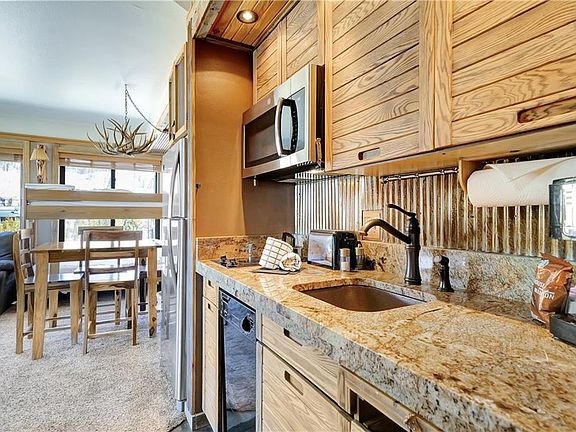 Rare find at Slopeside. Oversized studio corner unit that lives like a 1 bedroom. Recently remodeled with beautiful accents that give this condo a modern mountain feel. Take in afternoon sunsets from the west facing deck with views of the Gore Range or relax in the hot tubs after a long day of skiing. Great amenities including ski locker, underground heated parking, clubhouse, hot tubs, and a quick walk to the Peru lift. Great 2nd home or investment property with excellent rental potential.