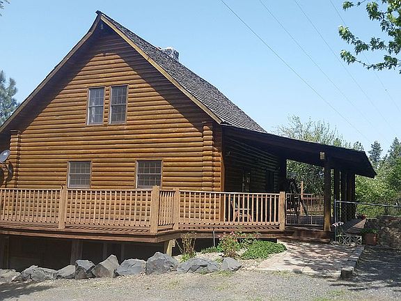 3 Bedroom, 2 3/4 bath log home with horse barn on 5 plus acres. Open room concept with master suite loft. Newly remodeled kitchen with all new appliances, 25 sqft. Panty/laundry room and a den. Deck wraps around 3 sides of house. Attached garage. Fenced yard. City water and sewer. Barn is 40 X 36 with 7 possible stalls. Fenced pasture. RV hook up. $279,000. Please call Diana at 208-301-three zero four eight for viewing. Realtors welcome, we will pay 3% commission. The Zillow estimate is not including the barn and acreage.