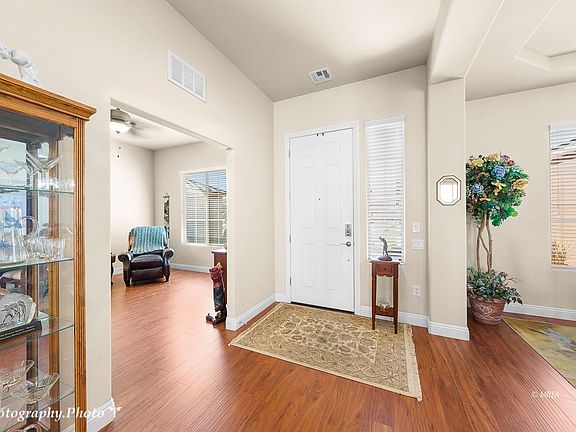 This nicely appointed Sun City Marigold is located on a large cul-de-sac lot located in the sought after Tannery Cove neighborhood. The costly turreted entry provides loads of curb appeal. The large extended garage has plenty of room for your vehicles/toys. This 2103 sf beauty is a Sun City Mesquite favorite model. The large main bedroom has a bay window which allows both extra light and space. The attached en suite has a deep soaking tub and custom shower. The second bedroom, on the opposite side of the home, is oversized and easily accommodates a king sized bed. This bedroom has direct access to the guest bath. Plenty of room for entertaining in this lovely home. Lots of room in the .21 acre lot to make it your own. Great custom, built-in BBQ. Location is close to the Conestoga clubhouse. You will not want to miss this this lovely home.