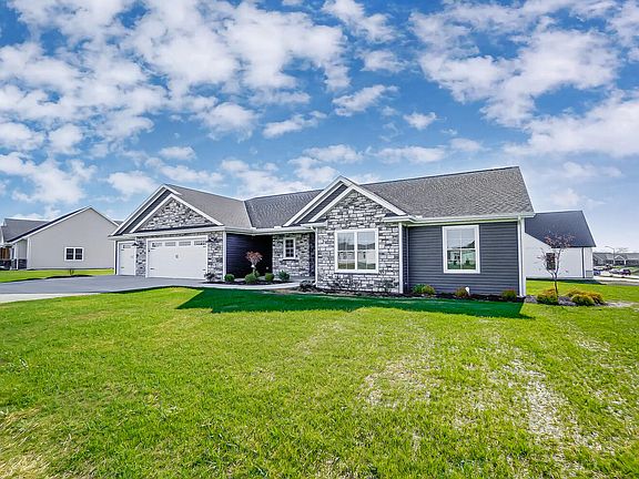 Custom built, quartz tops, custom built cabinets, cathedral ceiling in great room, open floor plan, 'no step' foundation, large corner lot.