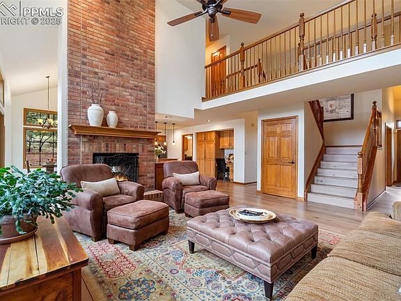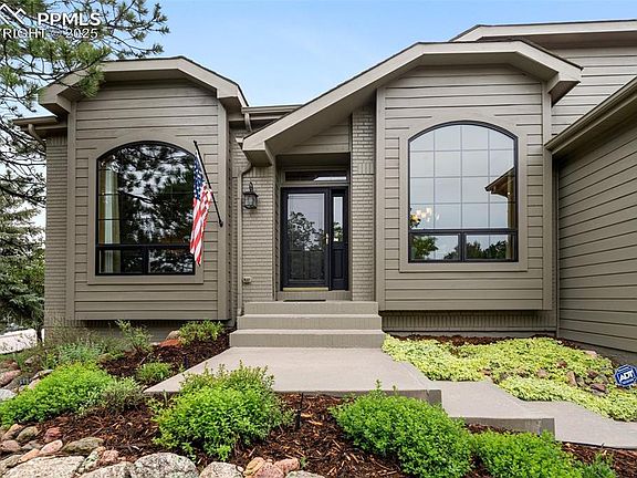 This 6-bedroom, 5-bath home in the highly desired Pinecliff neighborhood sits on a half-acre corner lot, backing to an open space for a private setting. Upon entry, the formal living and dining areas offer the perfect space for entertaining. The main level and staircase feature Karastan engineered hardwood flooring, known for luxury and craftsmanship. The soaring 2-story ceiling in the great room with a charming double-sided fireplace creates a warm and inviting space to gather. The spacious kitchen showcases high-end Fridigeaire Black Stainless Steel appliances, double ovens, granite countertops, and a secondary walk-in pantry. The main-level primary suite offers a spa-like bathroom and large his-and-hers closets. Upstairs you’ll find 3 additional bedrooms, 2 bathrooms, and a picturesque overlook of the great room. The basement includes 2 more bedrooms, 1 bathroom, and a cozy family room with a fireplace and kitchenette. A HUGE storage space, used as a game room, adds versatility. Gorgeous new Pella Clad windows throughout the entire home (Black aluminum exterior with wood interior finish). Oversized 3 car garage. The composite deck extends along the great room and kitchen for an ideal place to enjoy the Colorado outdoors. Property is framed with deciduous trees, pine, and beautiful scrub oak. Breathtaking city views at night. Award winning Academy School District 20 schools. Neighborhood access to Ute Valley Park, quick access to Garden of the Gods and front range hiking. This incredible home is not to be missed!