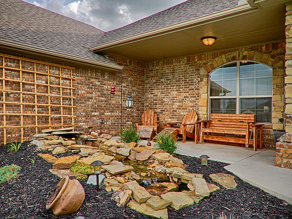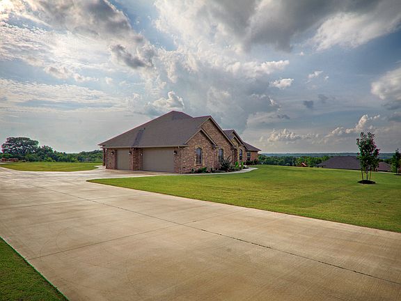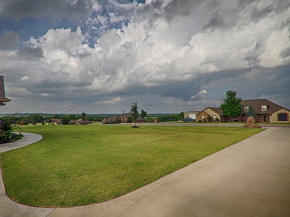 A beautiful hilltop view of the Oklahoma City skyline can be seen from this sophisticated Hill's home with their attention to detail & quality workmanship.This is a true 5 bedroom with an option 1 or 2 of them for being an office & media room.The open, spacious living w/gas burning fireplace is flanked with built-in bookcases.The kitchen has double ovens,external exhaust, island, breakfast bar, large pantry, 6 gas burner stove with grill & griddle.The master suite's walk-in closet is seasonal & the double vanities,whirlpool and shower with river rock floor with delight the most discriminating taste.The R-37 insulation in the attic keeps utilities low.3 car garage is oversized to accommodate big trucks or boats.Lots of storage.A 30x40 monolithic poured slab with footing has plates for either a weld-up or bolt-up building.This great home is located for easy commutes to major highways to Norman, Oklahoma City, Bricktown, TAFB, Will Rogers Airport, FAA, OU and everywhere in between.