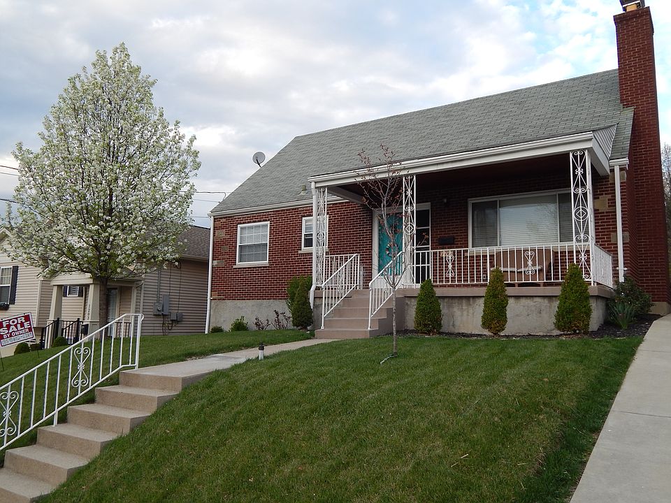 All brick Cape Cod home located in Bonnie Leslie area of Bellevue. REALTORS WELCOME to bring clients. Great view of Cincinnati Skyline. Wrap-around drive-way leads to a one-car garage in basement. If interested in viewing house then please call Blake @ 859-802-6189 to schedule an appointment. First Floor Features: - Original hardwood flooring - 26x13 living/dining room with gas fireplace - 2 bedrooms with full bath in between - 12x12 Kitchen with all updated appliances included -20x12 deck (built 2011) off back kitchen door -20x7 Covered front porch Second Floor Features: -New carpeting -19x11 Master Bedroom includes updated in-suite bathroom -Nursery/office/bedroom - 13x11 with extensive closet/storage space Additional Upgrades and Information: -Brand new blinds for all windows - New Garage Door and Opener - 9-year-old high-efficiency furnace - 9-year-old vinyl windows - Newly planted sod front yard (Fall 2013) - All rooms recently painted in last two years - New Electric Circuit Box
