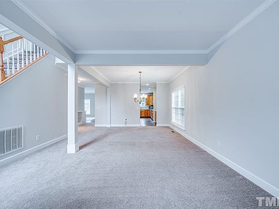 Situated on a private cul-de-sac this Apex home offers a true value w/ tons of space & SF. Open & bright floor-plan boasts both formal areas, a large kitchen w/ center island & SS appliances. Sun drenched family room w/ gas FP. Coveted 1st floor guest suite w/ full bath. Oversized master suite w/ vaulted ceilings & HUGE WIC. Ample sized secondary bedrooms & loft area. Awesome deck overlooks flat/usable yard & rarely available views of protected wooded buffer. NEW: SS apps, garage door, int. paint!