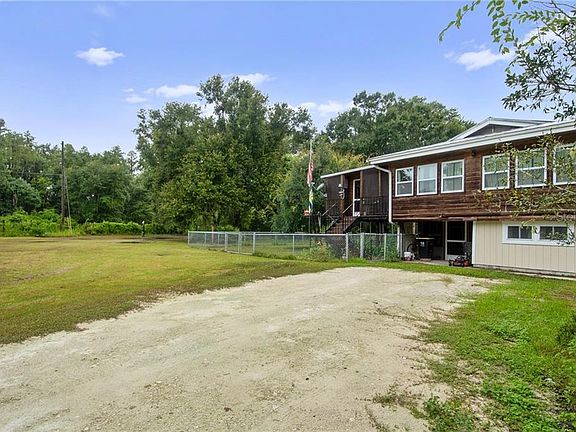 Come and take a look at this unique property with plenty to offer! This home features a 3 bedroom, 2 bath main home with a downstairs in-law suite, perfect for friends or family when they come to visit! As soon as you enter into the foyer of the main house you are welcomed by the open living room with easy access to the dining room and kitchen! The kitchen features lots of countertop space and a pantry for extra storage. As you continue through the home you encounter two generously sized guest bedrooms and the master bedroom which features double access to the master closet! Downstairs is the in-law suite that can be accessed either by the main steps or the fully-functioning outdoor elevator. Once downstairs, your friends and family can enjoy quiet afternoons in the private screened-in lanai. Downstairs you will also find a spacious extra bedroom, guest bathroom and private kitchen with GAS stove! Other notable features of the home include updated laminate flooring throughout the entire home, new vinyl DOUBLE PANE windows, and a Kinetico water softener and filtration system. Enjoy the great outdoors with over 4 acres of fenced-in land! The grounds of the property feature an outdoor workshop, washroom and as a bonus, 3 separate septic tanks and 3 separate electric meters! Be ready to be impressed with this property! Contact your realtor today for a private showing.