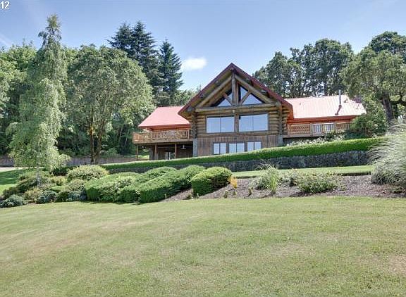 With expansive views and pristine landscaping, this Northwest home offers a rustic retreat with timeless construction. An array of scenery welcomes guests along the private road, from the view of the valley to a dramatic arrival at entry in front of the garden and grounds. The hand-carved log construction creates a mix of Northwest comfort with serene, natural elements.
