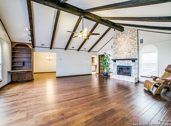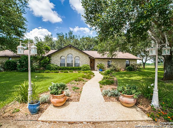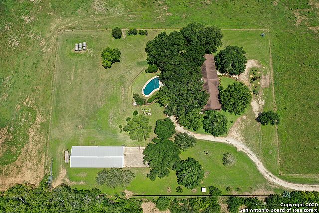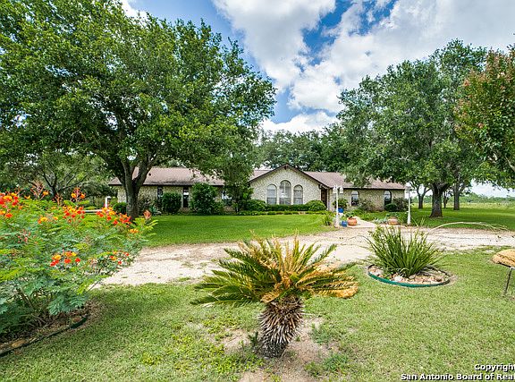 This beautiful unique Ranch Style Home is located in Adkins, Tx, just minutes from San Antonio and the San Antonio Airport, 1 mile outside Loop 1604. Approximately 12.5 Acres, 10.00 Acres is AG Exempt, 1874 sq. Home includes 3 Bedroom, 2 Bath, Beautifully Remodeled, High Ceilings in Living Room, Granite Countertops, Wood Floors, Plantation Shutters, Fireplace, Recessed Lighting, and a Extra Large 2 Car Garage. A Beautifully Landscaped Backyard with a Swimming Pool, Hot Tub, Basketball Court and A 2400 sq. ft. Shop. Water well for irrigation. This property is a must see!