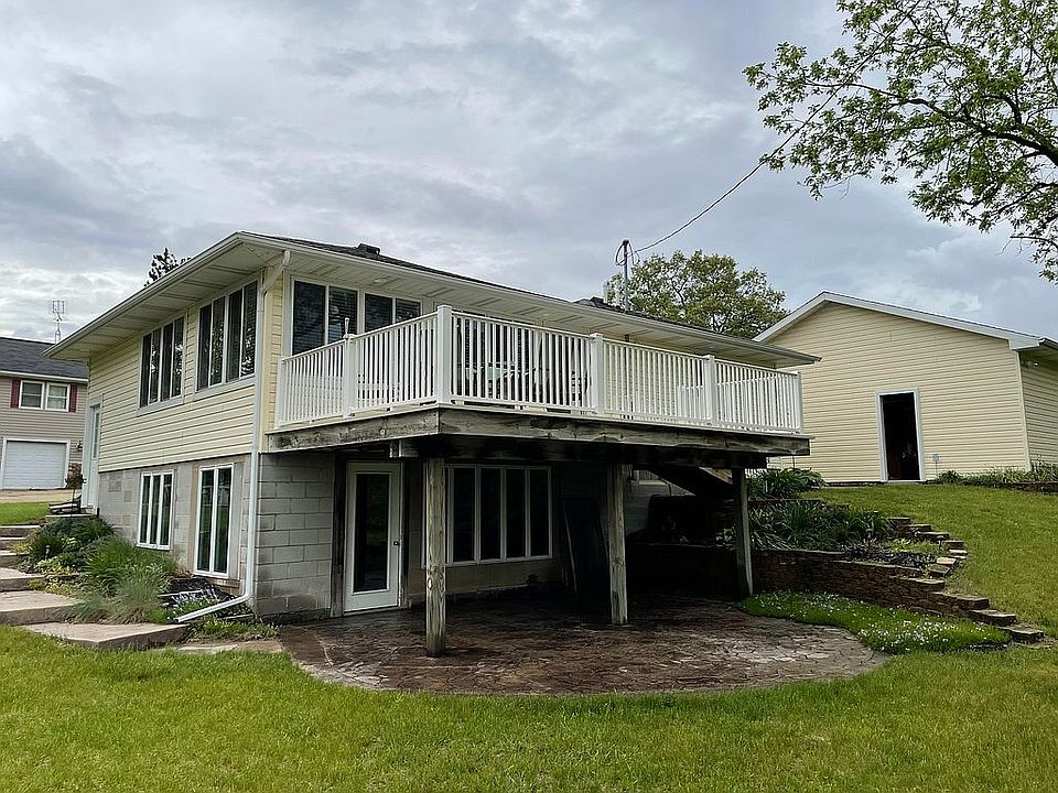 NEW LISTING!! Lovely lake front home. This 2 bedroom 2 bath sits on 112’ x 266’ of property on Little Long Lake. Spacious open concept kitchen, dining, and living room with a beautiful view of the water. Deck off of the living room is 20x12 over a larger decorative stamped patio with a walkout partially finished full basement. This home comes with a detached 3 car garage and a 20x10 storage shed. This property has a 12 foot shared deeded access to the lake. Recent improvements include a new furnace in 2020 and new counter tops, back splash and new laminate flooring in the kitchen, living room and hallway in 2022.