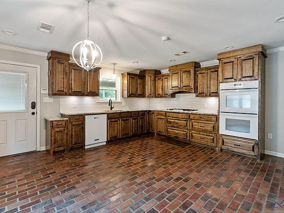 Great home on a 2.5-acre lot, featuring a 5,000-square-foot shed! You have to see this home, lot and shed to appreciate it. Unique features are smooth brick flooring in kitchen and laundry room, half bath with access to laundry room and carport, relaxing large porch in front of home!