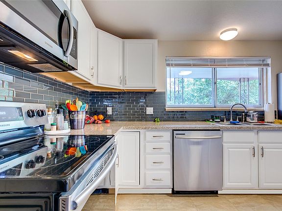 Fabulously updated Cherry Creek schools ranch home featuring 5 bedrooms (2 non-conforming in basement) and 3 gorgeous bathrooms. The kitchen features elegant - contemporary color scheme with granite and subway tile as well as newer stainless steel appliances. Cozy up by the wood burning fireplace in the living room or head to the basement family room (perfect for a theater) to watch a movie. The fully fenced - expansive backyard is Gardener's delight offering plenty of room for everyone!