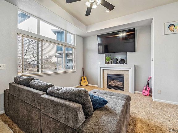 This end unit townhome in Jasmine Estates features 2 bedrooms, 3 bathrooms with 1,192 finished square feet. Enjoy this move in ready home with its open floor plan, 10’ ceilings, lots of natural light, new paint, washer and dryer. The kitchen has stainless steel appliances and is joined with a dining room for family and friends to gather. In the living room you can relax and cozy up by the gas fireplace on a cold snowy day. On the upper level you will find the master bedroom suite and second bedroom with its own private bathroom. Outside features include, 1 car attached garage, patio, extra storage room and the community pool and clubhouse. You’re only a few minutes away from shopping, dining, Hwy 85, Trail Winds Rec Center, Margaret Carpenter Rec Center, parks and trails.