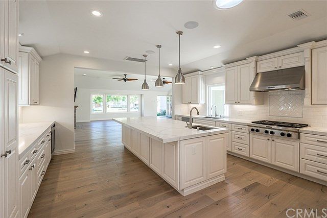 This impressive new construction Rossmoor estate is sure to impress even the most discriminate buyers. Completely rebuilt in 2017 except for 3 original walls, this stunning property has it all including exceptional design and gorgeous top of the line finishes throughout. Situated on a corner lot, this single level home offers an open floor plan that flows ideally for entertaining on a grand scale, but very comfortable for everyday living as well. Vaulted ceilings, limestone fireplace and charming high-end oak hand scraped wide plank flooring throughout make a dramatic front entry into the great room. The light and stunning kitchen is an absolute show stopper with a huge kitchen island & beautiful quartzite counter tops, Kitchen Aid Pro S/S appliances, built-in oversized 42 inch Kitchen Aid side by side refrigerator, Kitchen Aid 6 burner professional cooktop and hood, and Kitchen Aid temperature controlled wine cooler. No expense was spared with this state of the art home which is pre-wired for 8 camera locations, all windows and doors are wired for security along with pre-wired Audio/Video in great room, bedrooms, kitchen and back yard patio and 4 Honeywell keypad locations for added security. All new Milgard windows, solid wood doors, custom tiled bathrooms, 30 year roof, Noritz on demand remote controlled tankless hot water heater, Slimline A/C unit, new automated sprinklers front & back, new landscaping and 2 seperate laundry areas are only a few of the many features!