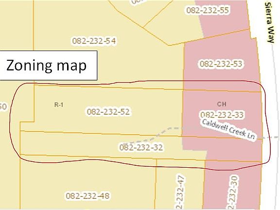 A Most Unique Offering! 3 Parcels, with 6 homes on 2.35 Acres. The home that fronts Sierra Way is zoned CH, the others are zoned R1. The front home also has a 2 car garage. Call for further details.