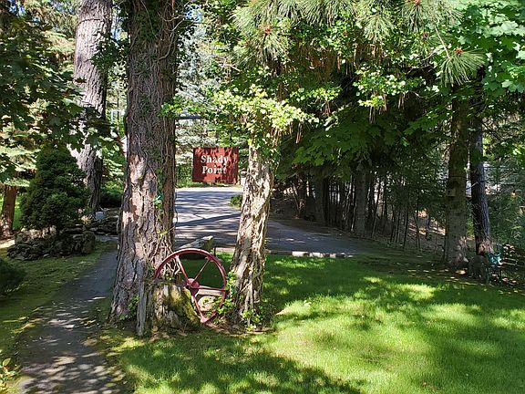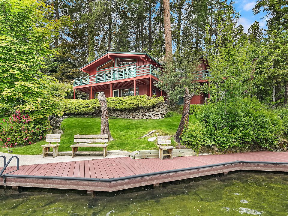 You cannot paint a prettier picture on the Spokane River at ''Shady Point'' with over 200' of waterfront which captures waterfront living with all the conveniences of town at your fingertips. Adorned in huge shade trees and emerald grounds, it creates a setting of unsurpassed beauty all nestled in secluded elegance. Greeted by seductive water view, incredible sandy beach and massive dock system, this cedar home opens to walls of glass, cathedral tongue and groove ceilings with open beams, gas fireplace and the coziness of a true cabin in the woods. There is a touch of country on just under an acre including paved gated entry with insulated oversized 2 car garage and large shed. Boat to CDA Lake, or just sit anywhere on the open wrap around deck and concrete patio to watch the world go by.