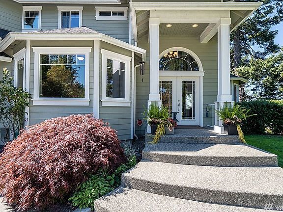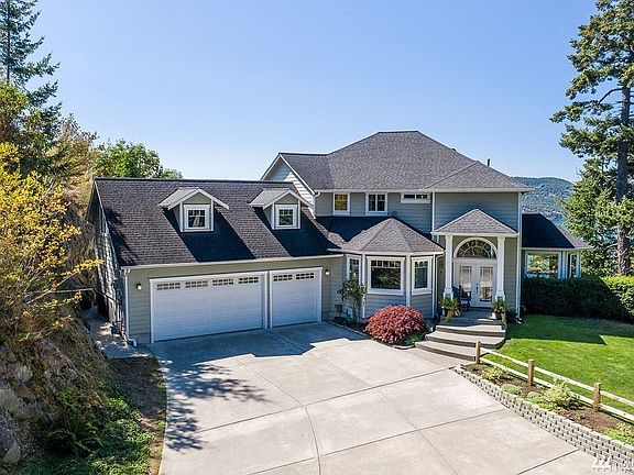 Location, location, location! Pass through the gates and rise above it all to your private view estate with expansive views of the San Juan Islands, snow capped Olympic Mountains and breathtaking sunsets! Solidly built into the bedrock on a bluff with dramatic rock outcroppings 300 feet above the bay, this custom home has exceptional finishes, beautiful granite counters, marble accents and hardwood floors. Luxurious master suite, open entertaining and a bonus room. Enjoy all day sun!