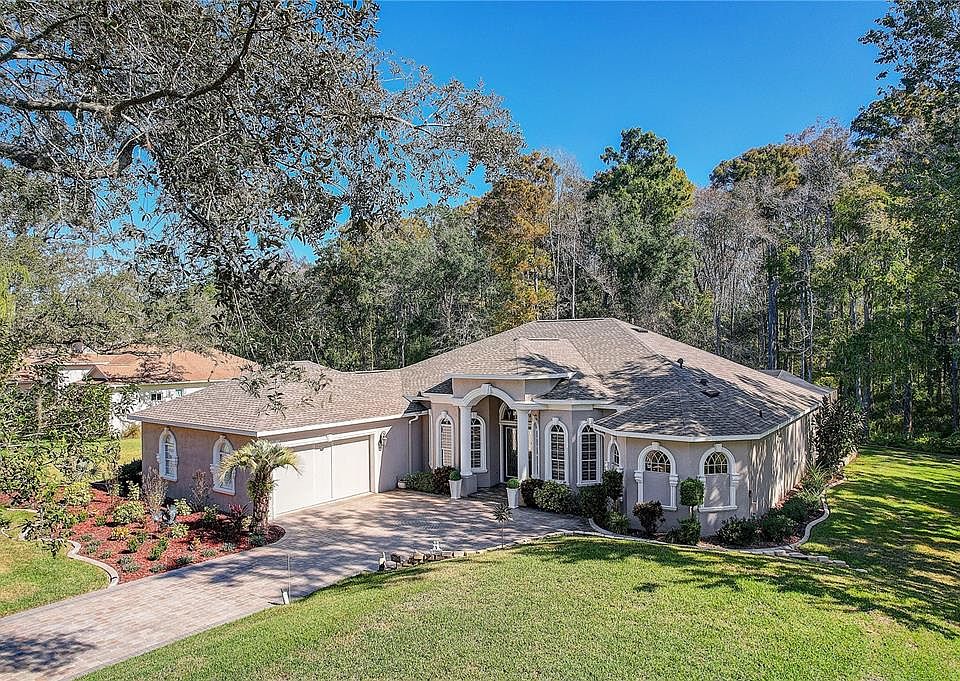 A rare hidden gem on 1.62acres awaits, ONLY 30 MINUTES north of Tampa Airport. Built in 2003, this 4 bedroom plus office, 3 full bath pool home, offers 3,192 sq. ft. of refined living. NO CDD, LOW HOA, and a spotless record free from hurricane or flood impact, it delivers privacy, elegance, and peace of mind. Estate living begins as stately shade trees anchor the manicured grounds, casting a graceful canopy over the paver driveway that leads to a grand yet welcoming bay covered entry. Step inside: to the right, an office provides a quiet retreat; to the left, a formal dining room sets the stage for elegant gatherings, both with bay windows. The centerpiece is a soaring 12 feet high ceiling, highlighted with a tray ceiling up to 13.5 feet with detailed crown molding. Expansive sliding doors connect seamlessly to the patio and sparkling saltwater pool, fully enclosed by a newly rebuilt no-see-um screen for year-round enjoyment. Beyond, the landscaped backyard stretches 30 feet into conservation, ensuring no future construction and complete seclusion from neighbors, only the beauty of lush greenery and blooming flowers. The gourmet kitchen boasts stainless appliances, 42-inch wood cabinets with crown molding, granite countertops, island, bar seating, and breakfast nook, together comfortably can host 50 to 60 guests. The spacious 14x30 sq. ft. primary suite boasts the continuation of the living room’s impressive high-ceiling elegance and overlooks the serene backyard with bayed sitting area. Dual walk-in closets (including a custom California closet) and spa-inspired bath featuring dual vanities, makeup station, garden tub, and walk around shower. The left section of the residence offers two bedrooms and two full baths, plus a laundry room with utility sink and tons of cabinetry. A versatile fourth bedroom, currently a media room, can easily transform into an in-law suite with private patio entrance. The oversized three car garage space includes a bay for golf cart or workshop, plus a double-wide pull-across garage screen, instantly converting the garage into a breezy, pest-free space for hobbies, fitness, or entertaining. Located in the estate section of Quail Ridge, with just 42 homes (most on 1+ acre lots) within a larger community of fewer than 300, this residence offers serenity amid Tampa growth. Here, timeless Florida charm thrives. Wild turkeys and sandhill cranes wander leisurely, and giant turtles amble slowly along the conservation edge. On some days, deer pause quietly before disappearing into the trees, a living reminder of the peaceful rhythm of nature. Classical Preparatory School, an A-rated K–12 charter school, consistently earns an “A” rating from the Florida Department of Education, is within golf cart distance, enriching family life with top-tier education. Just 2 minutes from Veterans Expressway (589), enjoy quick access: 30 minutes to Tampa International Airport, 40 minutes to Downtown Tampa, and seamless routes to Westshore business district, International Plaza, and County Line Road shopping and dining. Living here means you will never miss Tampa Bay’s vibrant events, sports, or waterfront activities, while still returning home to peaceful estate living. Shingle roof (Sept 2021), HVAC 5-ton (July 2021) plus separate 2.5-ton for primary suite, brand-new septic (2025) and updated well system. Ready to experience the perfect blend of acreage, upgrades, and tranquility? Schedule your private showing today!