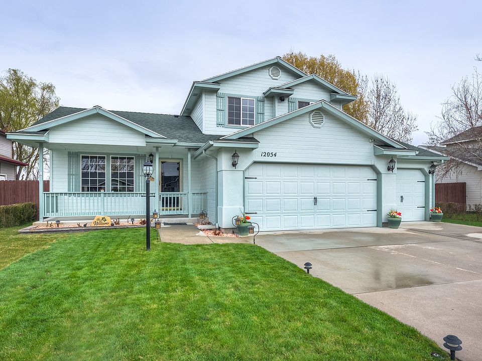 Immaculate home in a quiet cul-de-sac. The charming front porch welcomes you into a bright and inviting home with rich floors and natural colors. Stunning kitchen features dark cabinetry and gorgeous tile back-splash. Dining room leads out on to large covered deck that is great for entertaining with a hot tub. Large sunken family room with beautiful fireplace. Master suite boasts dual vanities and walk-in closets. Enormous back yard with shop, garden space, and chicken coop. New roof, sinks window tint, door security system and 50 gallon water heater.