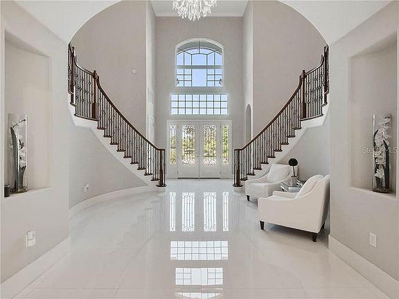 Set on a half-acre of beautifully landscaped grounds within one of Windermere's premier manned-guarded gate communities, Waterstone. This pristine, completely remodeled, five-bedroom and five-and-a-half-bath Toll Brothers home is an entertainer's dream and a multigenerational solution for families seeking sleek design, luxury, privacy and communal retreats all under one roof. The exquisite chef's dream gourmet kitchen showcases an oversized island with waterfall Calacatta marble countertops and backsplash, professional grade stainless steel appliances and amid blue-gray cabinetry with plenty of storage next to a large eat-in kitchen. Side-by-side formal living and dining rooms afford an interactive entertaining area. Dining room offers ample space to accommodate seating for 12 or more. Oversized family room offers built-in cabinetry for storage and location for large TV. Sliding glass doors encompassing the entire width of the family rooms lead to the beautifully landscaped outdoors, where a fully equipped gourmet summer kitchen overlooks the fantastic blue-bottomed swimming pool and spa. Green areas accommodate lawn games, rod iron fencing outlines the front and back landscape's beauty and tranquility. The generously sized master retreat exudes light, tranquility, modernity and luxury, showcasing dual closets. Upstairs, the tastefully and bright master bath has a deep soaking tub, dual showerheads with plenty of privacy and natural light. All bedrooms have their own modern and stylish baths. The laundry with its cabinetry, workspace and upgraded appliances is located to the right of the kitchen down a hallway that also leads to the two-car garage entry, with upgraded professional flooring. Waterstone residents have exclusive and direct access to Windermere Preparatory School via a private back gate. Turnkey condition with the option of negotiating the purchase of custom furnishings contained throughout the home.