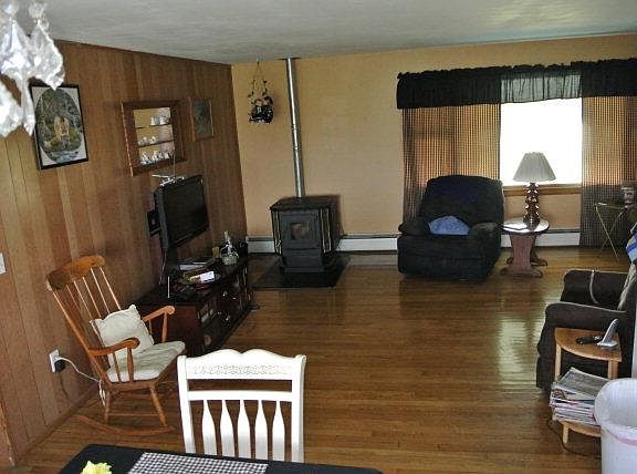 Impeccable views from almost everywhere on this property. Mother-in-law suite, which includes half bath, kitchen, 1 bedroom and living room. Replacement roof, one floor living, hardwood floors throughout, front and rear porch to enjoy the views. Offering 1.4 acres of nice lawn for those get-togethers. Pellet stove for those colder days/nights. Tall usable basement and 2-car detached garage wrap this up in a nice package. There is a generator hookup.