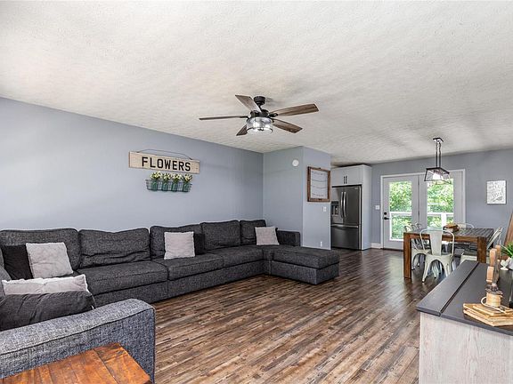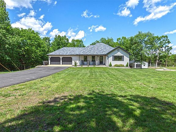 Your farmhouse dream has arrived! Pull in on the paved driveway, wander up to the covered porch and head on in. Barn doors greet you at the coat closet and new flooring welcomes you to living room, through to the dining room and over to a BRAND NEW kitchen! Kitchen includes induction top stove, pot filler, subway backsplash, quartz counters and more! Master suite includes a stunning shiplap wall, walk-in closet, double sink (Ohhh look at that Carrara marble) & shower. Two additional bedrooms, carpeted for comfort, laundry room & one bath round out the main floor. Head downstairs to the family room, two additional bedrooms, home gym space, office & one additional bathroom.Outdoors, enjoy the wide open spaces, with mature trees for shade, fire pit area for entertaining, poultry run and coop & new metal outbuilding (roughly 24 x 32 with 8 ft lean to) with power. Water is ran to spigot just outside of the barn/garage. Outbuilding includes roll up door & pass door. Roughly 15 mins from FLW!