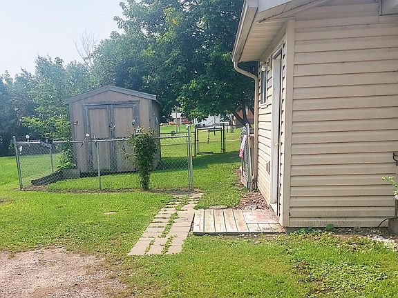 Small home. One level living. With in walking distance, post office, clinic, hardware store, bank, grocery, gas station,library, liquor store, laundromat, churches, 4 eating establishments. Walking/Biking trail. K-12 school approx. 1 mile away. Storage shed. Yard is partially fenced with chain link.