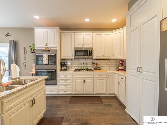 Impressive 2 story in Bennington with the all the finishes you're looking for! Plenty of room here with generous room sizes throughout and open feel with 9ft ceilings. Main floor features office, formal living or dining, family room with gas fireplace and quite the stylish eat in kitchen with all the upgrades to include wood floors, quartz counters, glass tile subway backsplash, extra tall cabinets, soft close drawers, built in buffet, double ovens, gas stove, center island/bar and a huge, hidden walk in pantry! Locker area and bath located off the 3 car garage. Massive master bedroom with trayed ceiling and master bath with 2 sinks, giant walk in closet, separate shower and wp tub. 3 additional beds have walk in closets, their own access to baths and there's the convenient 2nd floor laundry. Lower level with day light windows has electrical and ready for your finishes. Nice deck overlooking large yard with sprinklers & a full wood, privacy fence. Great curb appeal!