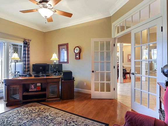Custom built ranch on 3 acres backing to private lake! This home boasts 3,700+ sqft, 4 Beds & 2.5 Baths! Therma-Tru front doors, 11 ft ceilings, crown molding & wood floors; Office/4th Bed with french doors, crown molding & walk-in closet. Stunning Great Room boasts 13 ft ceilings & stone gas FP. Kitchen features custom cabinets/undermount lights, granite, breakfast bar, SS appliances & walk-in pantry. Finished back porch with wall of windows/lake views, porcelain tile floors & all weather ceiling fans. Master Bed with huge window overlooking the lake & luxury Bath; 2 nicely-sized Beds connected by Jack/Jill Bath. Main Floor Laundry! Extra wide staircase to W/O LL with egress windows, laundry & plumbing rough-ins! Highlights: newer roof, Honeywell humidifier, tankless WH, (2) 200-amp electric panels, Toro irrigation system-19 zones & rain sensor. Relax on the paver patio with water feature & enjoy the huge backyard! Great location - close to Innsbrook, shops, restaurants & hwys!