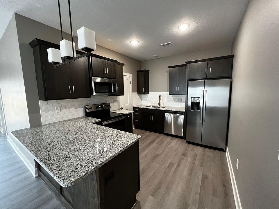 This stunning 3-bedroom, 2-bathroom duplex with a 2-car garage offers modern comfort and style. Enjoy beautiful luxury vinyl plank flooring throughout, creating a seamless flow in the open-concept living space. The spacious kitchen features sleek granite countertops, a large island perfect for cooking and entertaining, and comes fully equipped with a microwave, range, dishwasher, and refrigerator all at your fingertips. The master bedroom is generously sized, complete with a walk-in closet and a private, well-appointed bathroom with a shower. The second bedroom is also spacious with a good-sized closet. Additional features include a full second bathroom and convenient in-unit washer/dryer hookups (tenant to provide washer/dryer). Located in the sought-after Mazie School District, this home is just minutes away from New Market Square, offering easy access to shopping, dining, and entertainment. Don't miss out on this incredible opportunity! Schedule a tour today! Tenants pay all utilities. 2 Pet Max Policy **