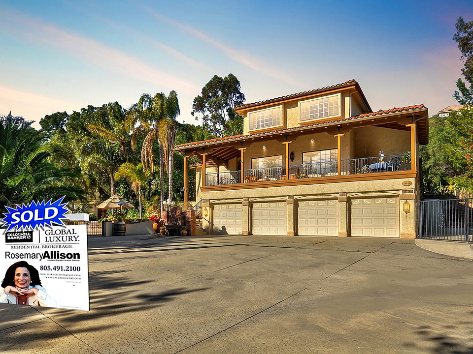 ROSEMARY ALLISON has already SOLD this HOME! Call/Text Rosemary 805.479.7653 to find out how she can sell your home or find you another like this one by utilizing the knowledge & resources acquired over 35 years. Results, not promises! Call her at: 805.491.2100. Rosemary SELLS the FINEST HOMES! 4-bedroom, 3 bath home in Santa Rosa Valley just almost 3500 square feet, is located on a flag lot with tremendous privacy. This home exudes Tuscan warmth from the wrap around exterior veranda to the rich wood flooring in the entry.Stunning entry with beautiful tiered fountain.Chef's gourmet kitchen with wood floors, built-in stainless refrigerator,imported Turkish granite counters,Wolfe range w/pot-filler,double Viking ovens, w/self-closing rich Mahogany cabinetry Separate breakfast room exposed beam ceilings.Enjoy the huge family room with exposed beam ceiling, for holiday entertaining w/fireplace and large wet bar. Spacious Master bedroom w/vaulted ceilings, fireplace, walk-in closet, jetted tub and remodeled granite master shower.There are two additional secondary bedrooms upstairs. One-bedroom downstairs is currently utilized as office. Huge laundry room. Additional features include indoor laundry, and dual heating and A/C. For the car enthusiasts there is an oversized 4 car garage. The home has a well-appointed front entertaining area with stamped concrete area and is surrounded by many fruit trees and landscaping. The backyard is wooded with stately pepper and palm trees, providing privacy.Located in awarded winning SRTMS school district. Gazebo.