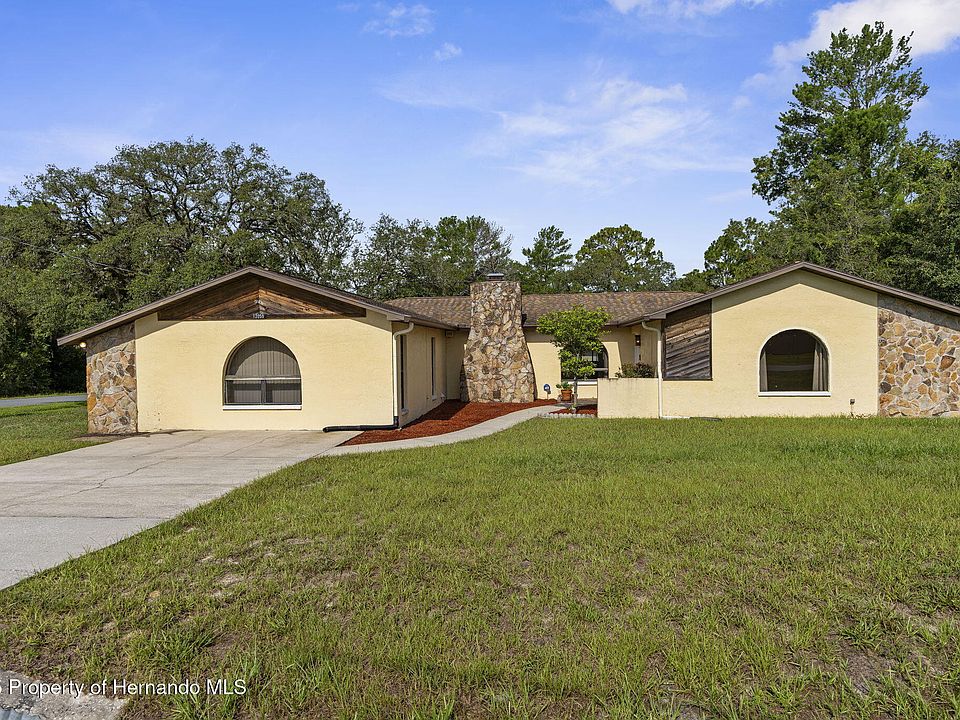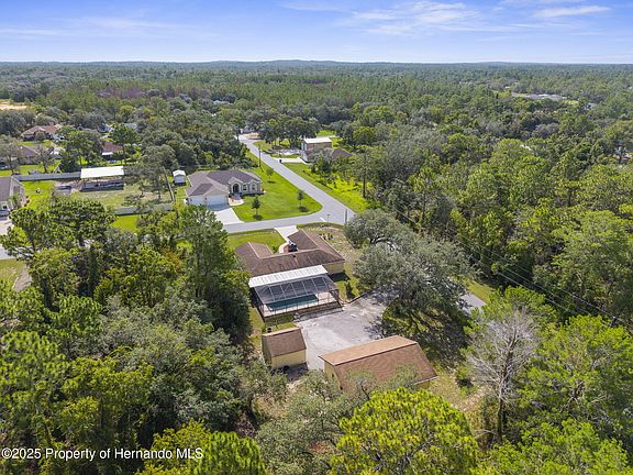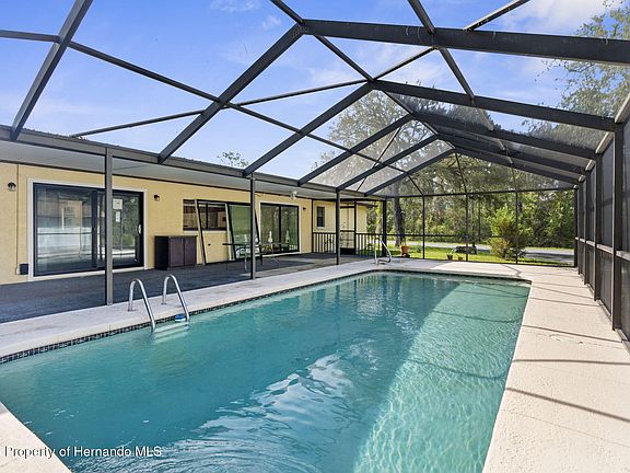 Discover this stunning 4-bedroom, 2-bathroom pool home with a versatile entertainment room, perfect for hosting gatherings or enjoying as an additional living area, located in the highly desirable Royal Highlands community of Hernando County. Sitting on a spacious 0.40-acre lot, this 2,386 sq ft residence offers a rare 4-car garage, ideal for extra vehicles, storage, or a workshop. Enjoy a split floor plan with tile floors, brand-new carpet in the bedrooms and family room, a cozy fireplace, and two new hurricane-rated sliding glass doors. Recent updates include an upgraded secondary bathroom, a 2018 roof on the garage and 2012 roof on the house, and new LeafGuard gutters around the home. The sparkling pool is perfect for Florida living, while the separate detached garage adds unmatched flexibility. Close to Weeki Wachee Springs State Park, shopping, dining, and just minutes from Citrus County. Don't miss the chance to own a move-in-ready home in a sought-after location!