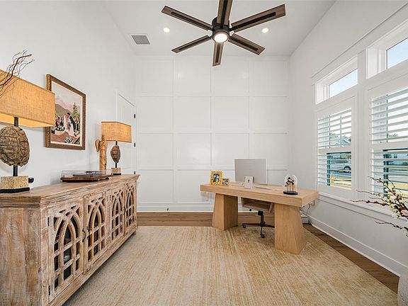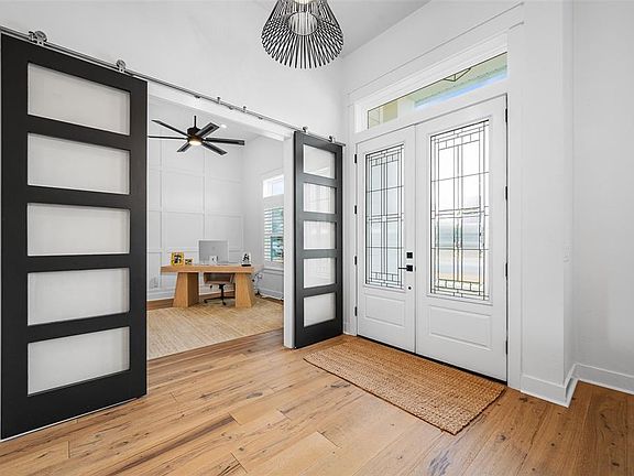 Under contract-accepting backup offers. Nestled on a prime corner lot in Gloria's Way, this 3 Bedroom PLUS Study (could be 4th BR) POOL HOME was formerly the builder’s personal home. It offers an exquisite blend of architectural sophistication and resort-style living. The open-concept interior is defined by soaring 13-foot ceilings, stepped tray details, upgraded features throughout, modern design with painted stone and open shelving accents and rich hickory hardwood floors. At the heart of the home, the chef’s kitchen is a masterpiece featuring floor-to-ceiling cabinetry, quartz counters, Scotsman built in ice machine, and professional-grade KitchenAid appliances, complemented by a custom bar with a Thor beverage center and a walk-in pantry with butcher block shelving. The primary wing serves as a private sanctuary, boasting a spa-like bath with a 14-jet soaking tub and a massive closet with high-end custom built-ins. Step through the glass retractable sliding doors to an outdoor oasis where a stained cypress ceiling covers a summer kitchen equipped with a Blaze grill, motorized screens, overlooking a stunning 14x26 saltwater pool featuring fire-bowls, waterfalls and a sun shelf. The fully fenced and professionally landscaped grounds are completed by a paver fire pit area, a tankless gas water heater, full Cat 6 networking, full security system with new cameras and doorbell, ensuring every modern luxury is at your fingertips.