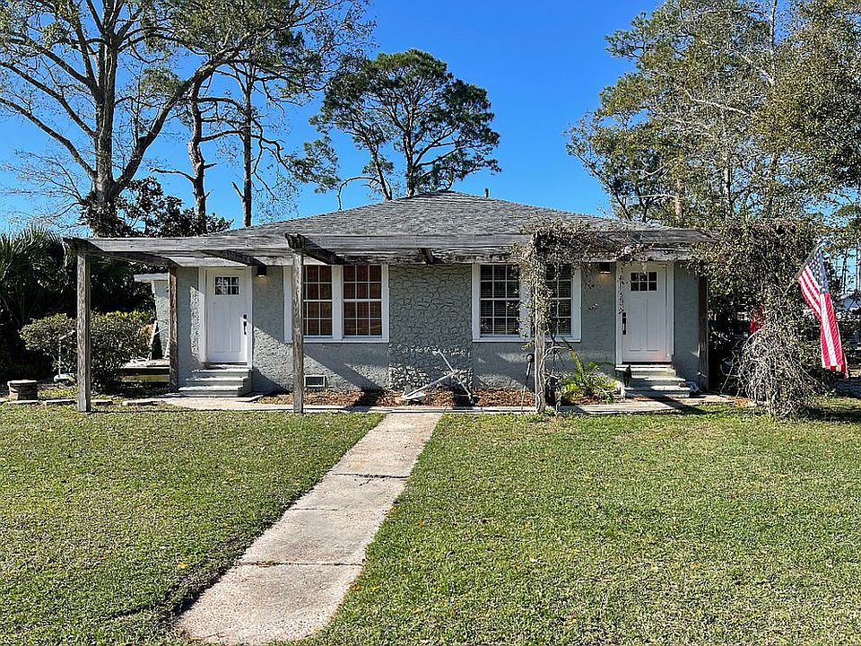 It's a quaint duplex located in the heart of Port Saint Joe. It's located on Palm Blvd., one of the greatest and quietest places to live in Port Saint Joe and also Port St. Joe is a golf cart friendly town. It's a stucco duplex that was remodeled in 2020 with new walls, new floors, new appliances, and new paint. Each side of the duplex has one bedroom, one full bath, a kitchen, a dining room, and a living room. Each side of the duplex has its own garage.