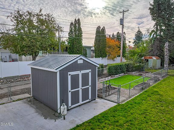 Outside, the upgrades continue: a new concrete driveway with an extended parking area, new front steps, and a new storage shed on its own concrete pad. The yard is beautifully landscaped with an automatic sprinkler system covering the front, back, and flowerbeds—plus above-ground sprinklers for the garden. A utility gate has also been added for convenient access through the alley.
