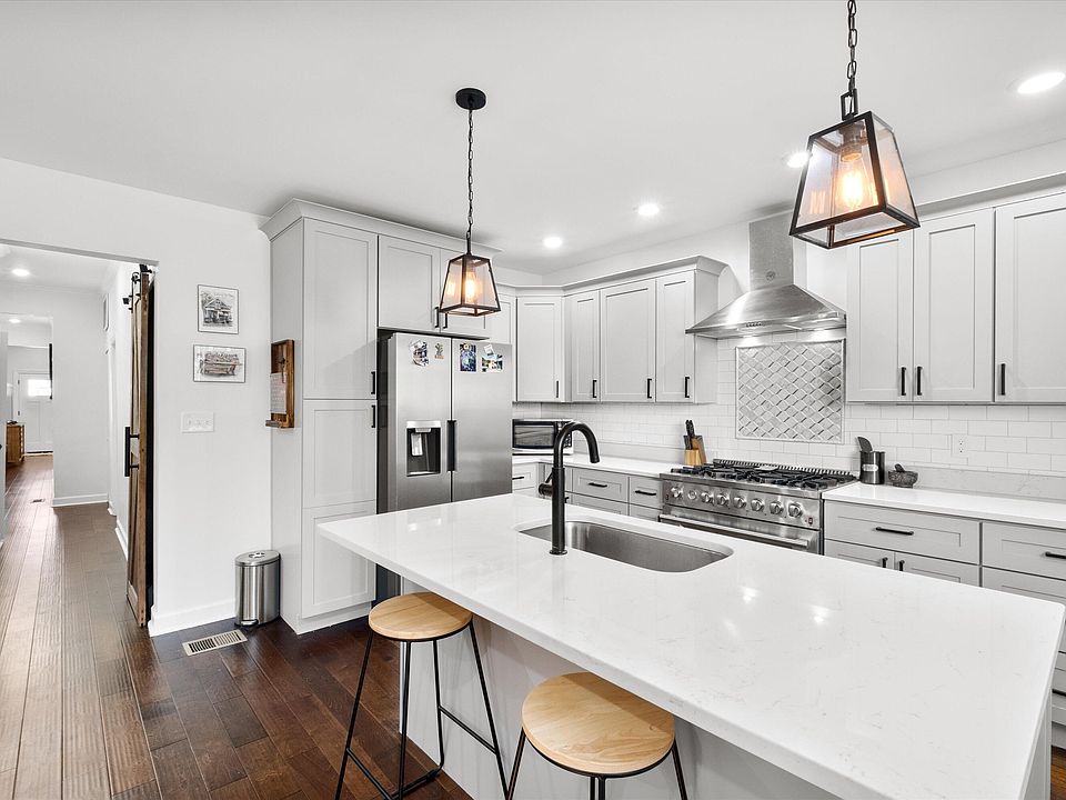 Welcome to 1206 Barret Ave- beautifully renovated with care, this home has been reimagined with charming character, modern fixtures, and a functional floorplan. NEW electrical, plumbing, drywall, roof, siding, gutters...be sure to see pictures! The chef's kitchen features new gray custom cabinetry with quartz countertops, custom tiled backsplash, stainless steel appliances and range hood, as well as an eat-in dining space. The living room features an original decorative fireplace, large windows overlooking the quaint covered porch, and hardwood floors throughout. Two sizable bedrooms share an oversized bathroom, complete with a custom tiled shower, vanity, and soaking tub. Laundry is conveniently located in a separate closet in the hallway. Enjoy private entertaining in the fully fenced backyard featuring a new deck.