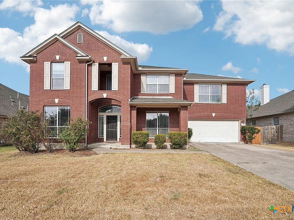 Welcome to this fantastic 5-bedroom, 4-bath home featuring a spacious game room, formal dining, and flexible floor plan! The kitchen opens to the main living area and includes a center island, gas cooktop, Corian countertops, built-in microwave and oven, and a cozy eat-in breakfast nook. The main living and dining rooms showcase hand-scraped wood laminate flooring, abundant natural light, and a gas fireplace. The primary suite offers a private bath with a separate tub and shower. A downstairs bedroom with glass double doors and a closet makes an ideal office or den. Upstairs, two bedrooms share a convenient Jack-and-Jill bath. Enjoy outdoor living with both a covered front porch and a large covered back patio overlooking the spacious yard—perfect for entertaining! Fresh interior paint and new carpet (October 2025). Conveniently located near shopping, dining, and major employers.
